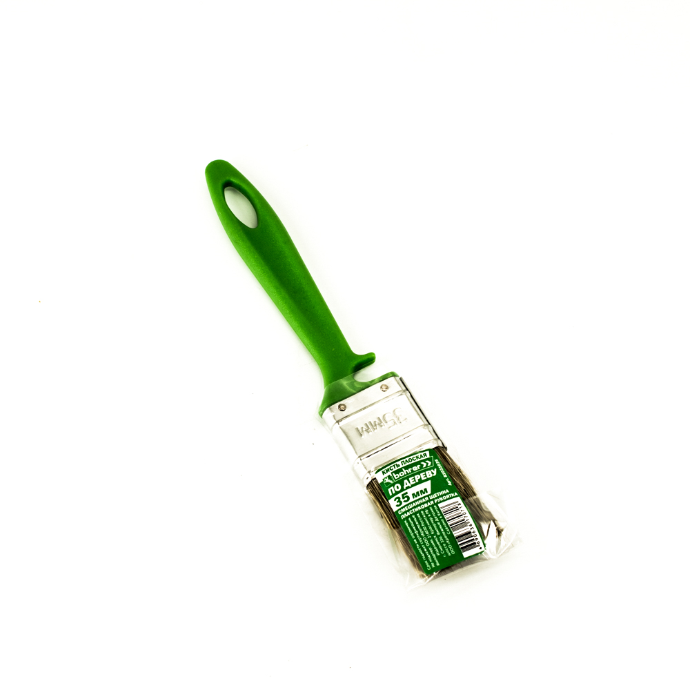 Кисть плоская Bohrer "По дереву" 35 мм (смешан. щетина 45 х10 мм) зеленая пластиковая рукоятка Упаковка 12 шт.