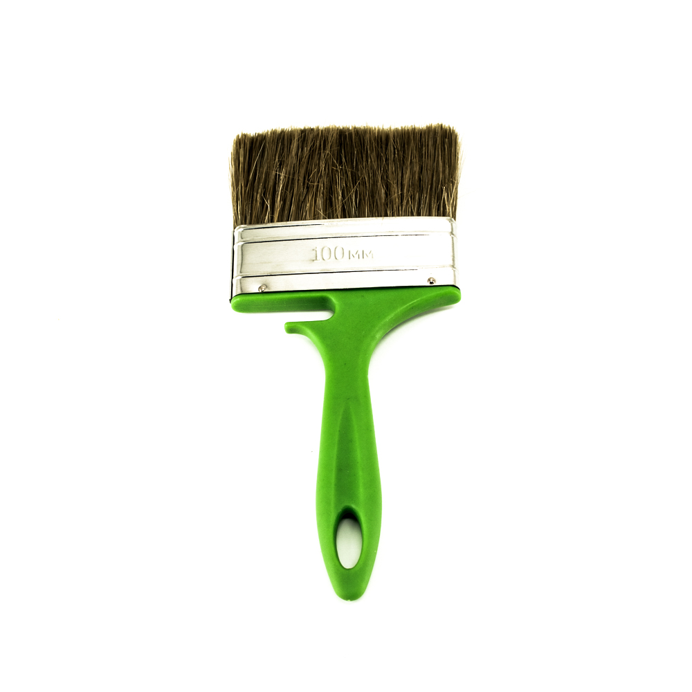 Кисть плоская Bohrer "По дереву" 100 мм (смешан. щетина 51 х12 мм) зеленая пластиковая рукоятка Упаковка 12 шт.