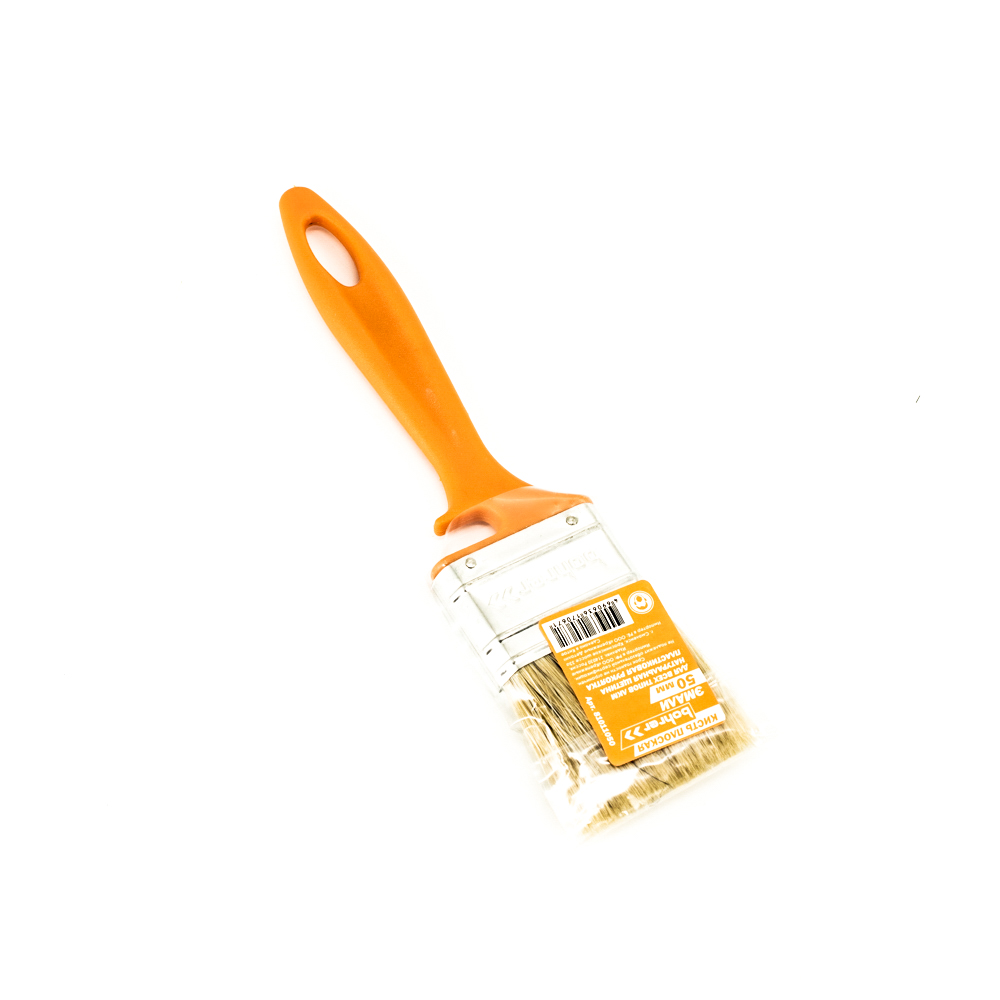Кисть плоская Bohrer "Эмали" 50 мм (натур. щетина 45 х12 мм) оранж. пластиковая рукоятка Упаковка 12 шт.