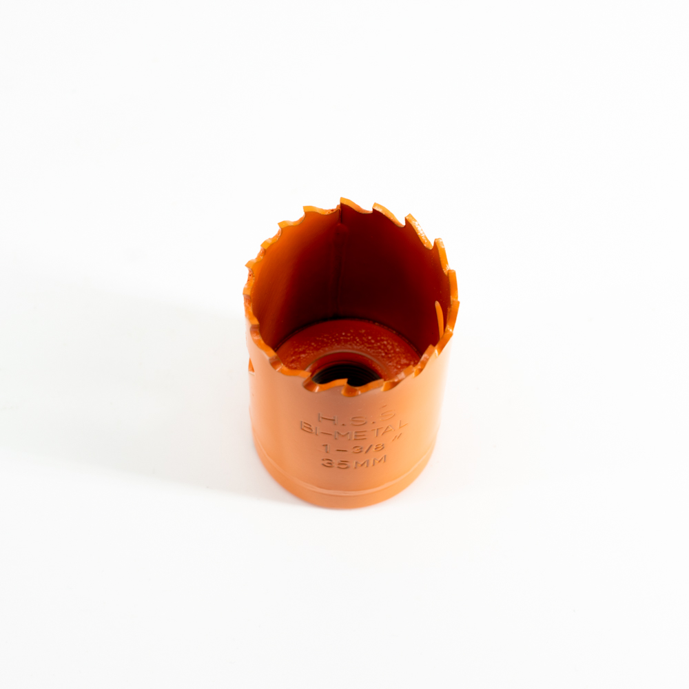Коронка биметаллическая предназначена для сверления сквозных отверстий большого диаметра в дереве, пластике и в тонколистовых металлах: углеродистые, легированные и нержавеющие стали, цветные металлы и другие материалы с твердостью до 33 HRC по шкале Роквелла. Рекомендуется использовать системы охлаждения инструмента, в частности охлаждающе-смазывающие масла.