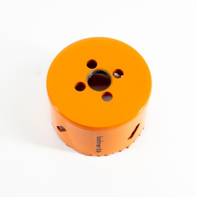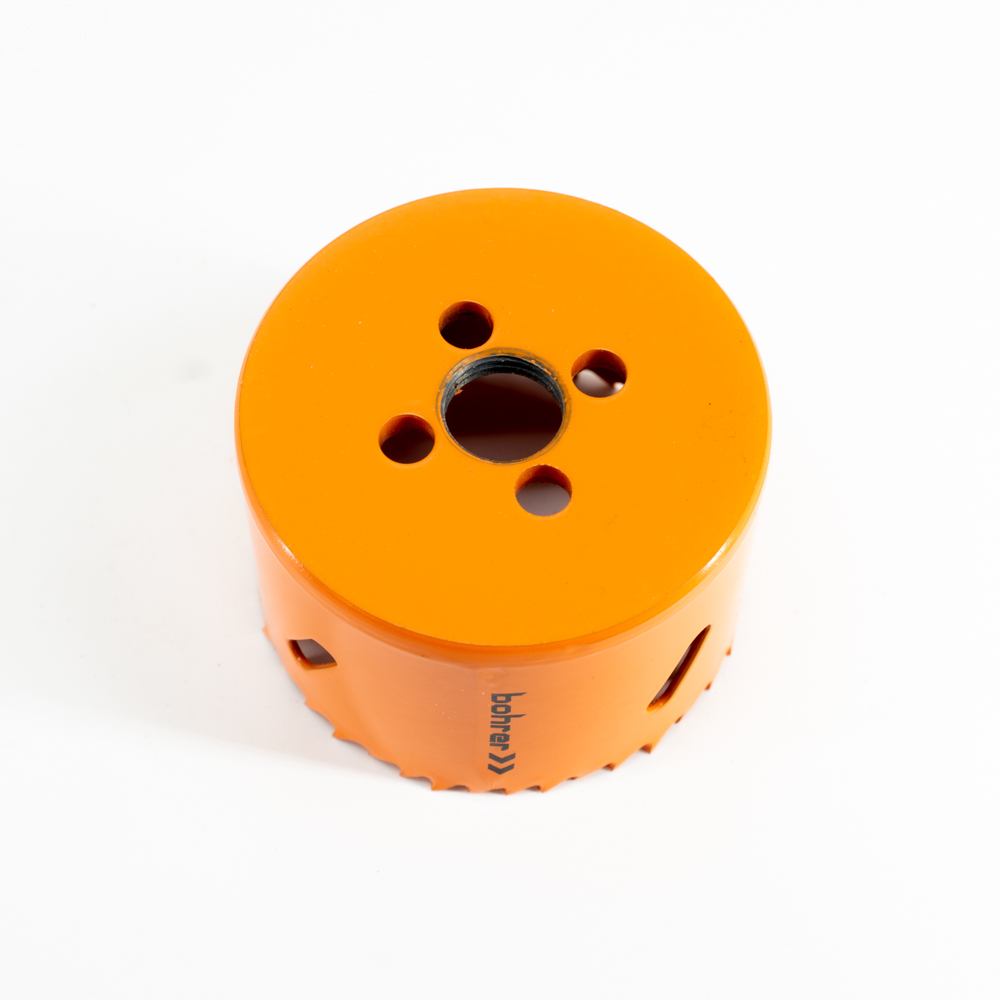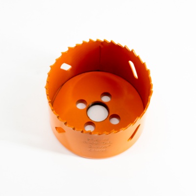 Коронка биметаллическая предназначена для сверления сквозных отверстий большого диаметра в дереве, пластике и в тонколистовых металлах: углеродистые, легированные и нержавеющие стали, цветные металлы и другие материалы с твердостью до 33 HRC по шкале Роквелла. Рекомендуется использовать системы охлаждения инструмента, в частности охлаждающе-смазывающие масла.