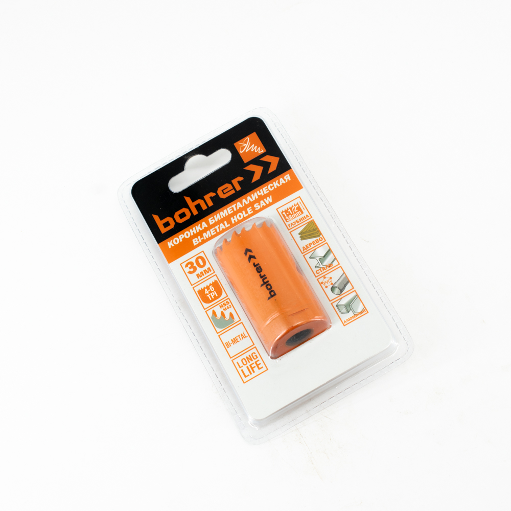 Коронка биметаллическая Bohrer 30 мм (сталь HSS M42) (сталь/дер/алюм/пласт) (блистер)