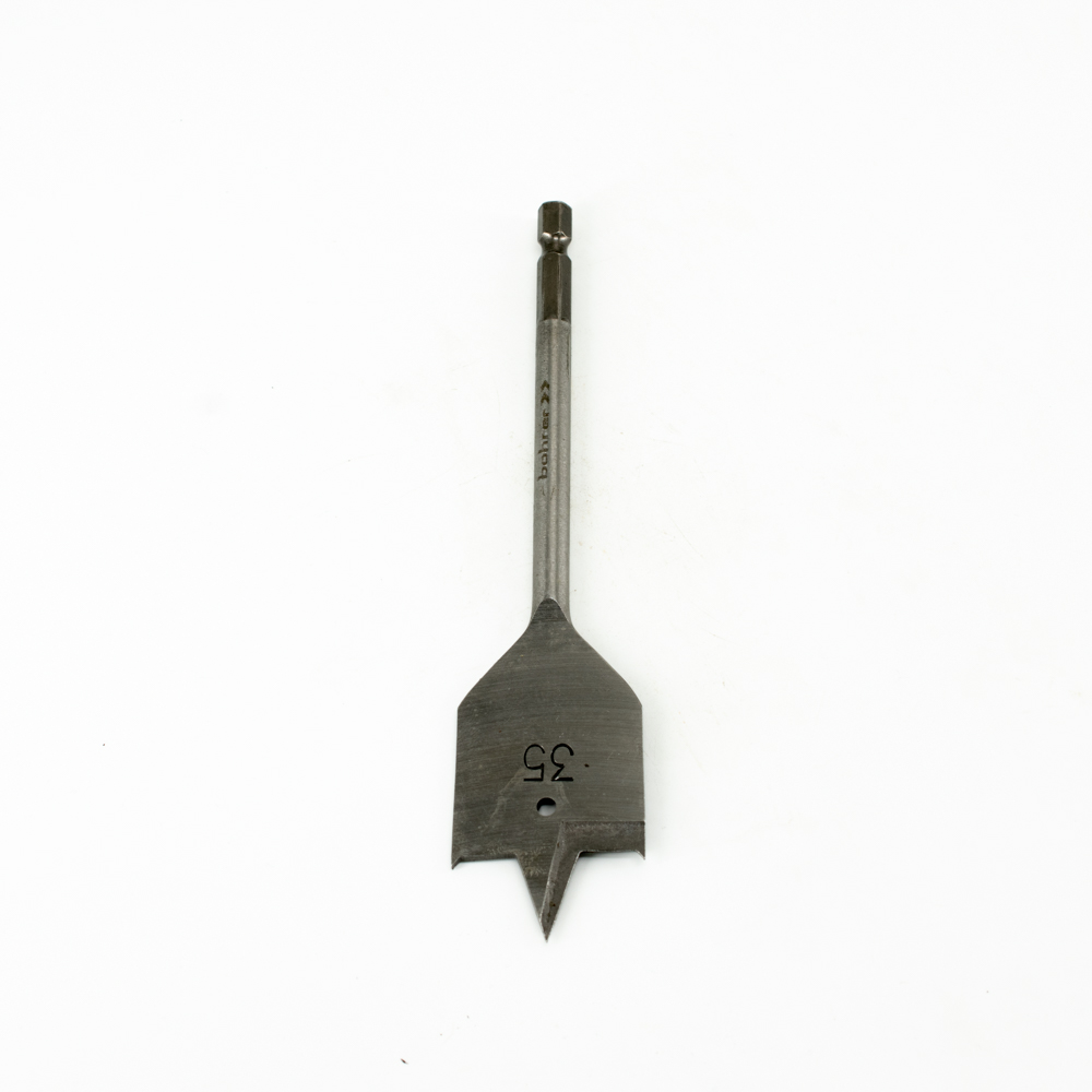 Сверло по дереву перовое с шестигранным хвостовиком предназначено для дрелей, шуруповертов. Подходит для работы с древесиной, ДСП, МДФ, фанерой, гипсокартоном. Сверло изготовлено из инструментальной стали, закаленной в рабочей части. Оснащено очерчивающим остриём, что позволяет получить ровное, цельное отверстие. Шестигранный хвостовик обеспечивает надежное закрепление в патроне.