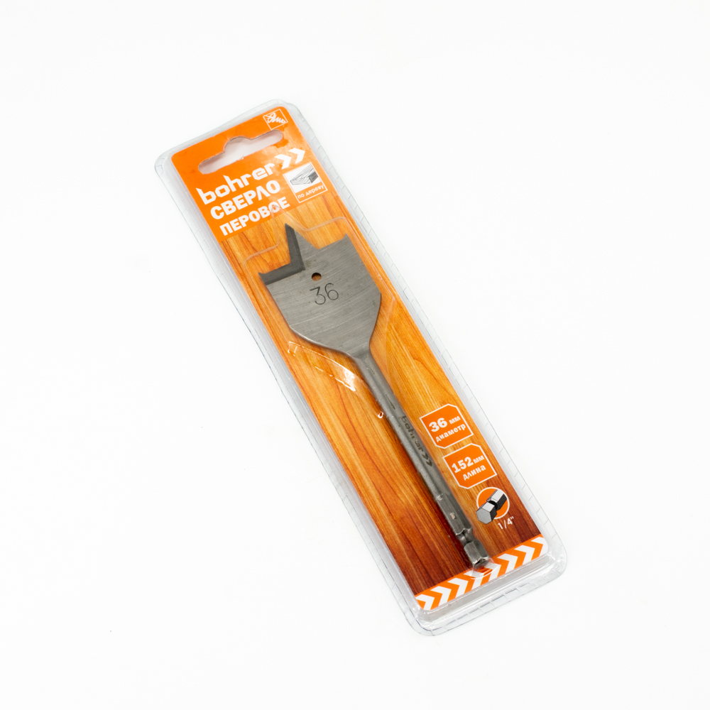 Сверло Bohrer перовое по дереву 36 х 152 мм (в блистере) (300/75/1)
