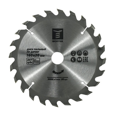 Диск пильный по дереву MosTek 160x20/16 мм, 24Т зуба (50/25/1)
