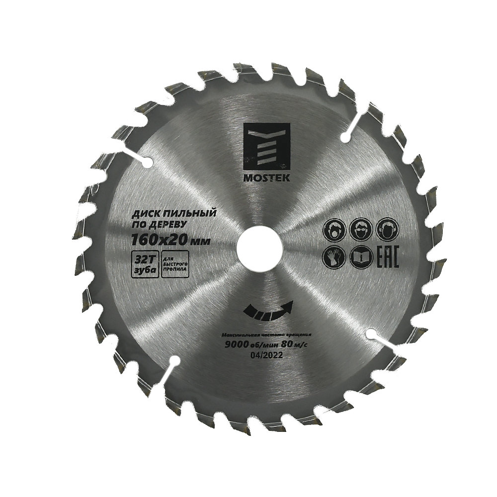Диск пильный по дереву MosTek 160x20/16 мм, 32Т зуба (50/25/1)