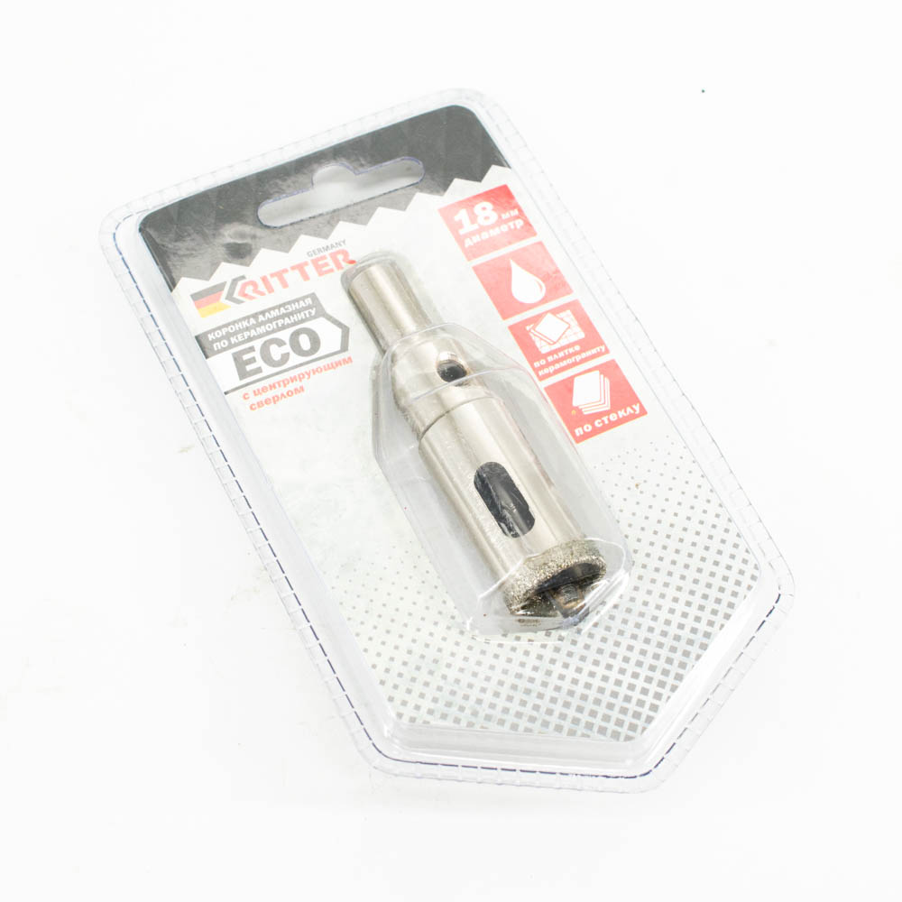 Коронка алмазная Ritter Eco по стеклу и керамограниту 18 мм (блистер)