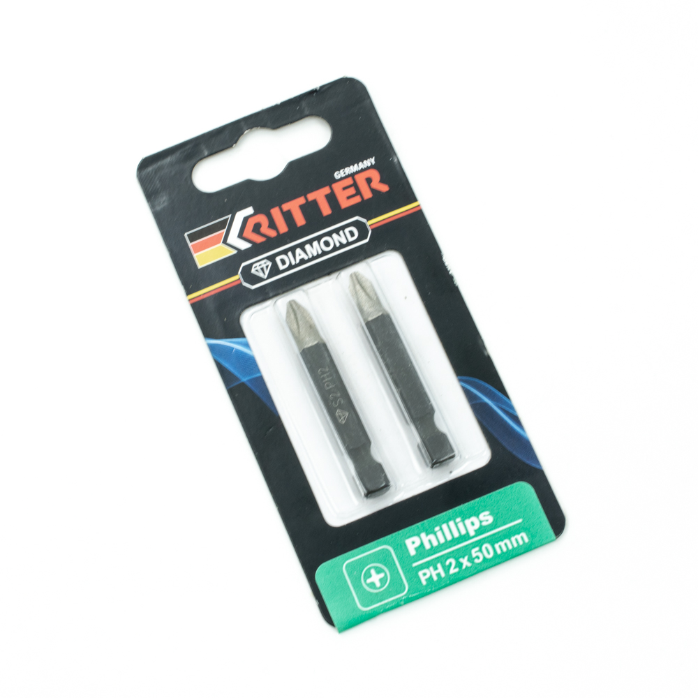 Бита Ritter Diamond PH 2x50 мм магнитная (алмазное покрытие, сталь S2) (2 шт. в блистерной упаковке)