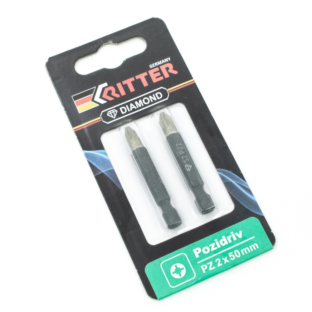 Бита Ritter Diamond PZ 2x50 мм магнитная (алмазное покрытие, сталь S2) (2 шт. в блистерной упаковке)