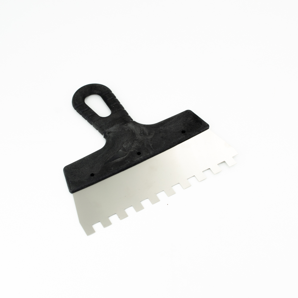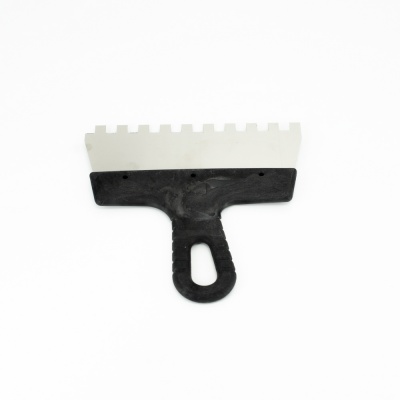 Зубчатый шпатель – это инструмент, используемый для установки плитки. Зубчатые шпатели применяются для разглаживания и расчесывания клея, который помогает крепить плитки к основанию