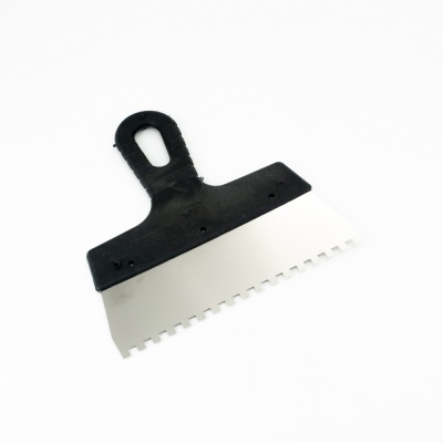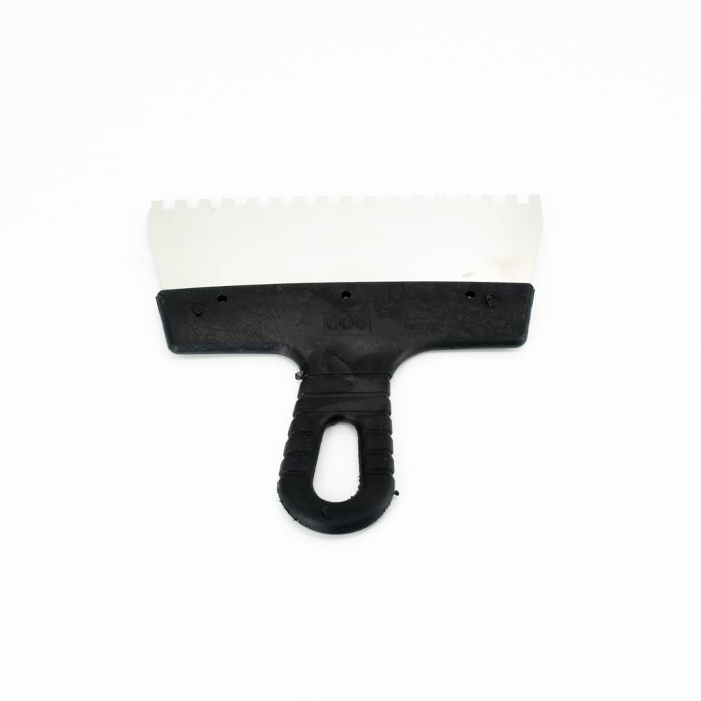 Зубчатый шпатель – это инструмент, используемый для установки плитки. Зубчатые шпатели применяются для разглаживания и расчесывания клея, который помогает крепить плитки к основанию