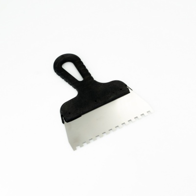 Зубчатый шпатель – это инструмент, используемый для установки плитки. Зубчатые шпатели применяются для разглаживания и расчесывания клея, который помогает крепить плитки к основанию