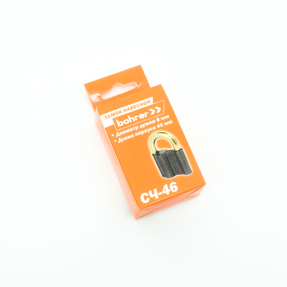 Замок Bohrer навесной СЧ-46 (дужка 8 мм, 3 ключа) (корпус 46 мм) (с подвесом)