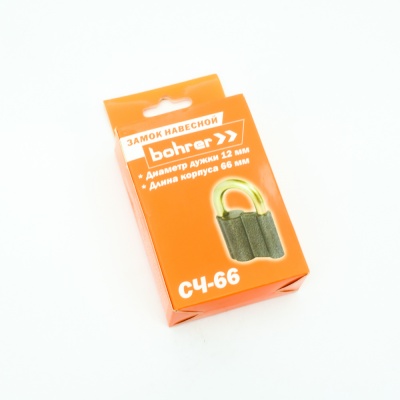 Замок Bohrer навесной СЧ-66 (дужка 12 мм, 3 ключа) (корпус 66 мм) (с подвесом)