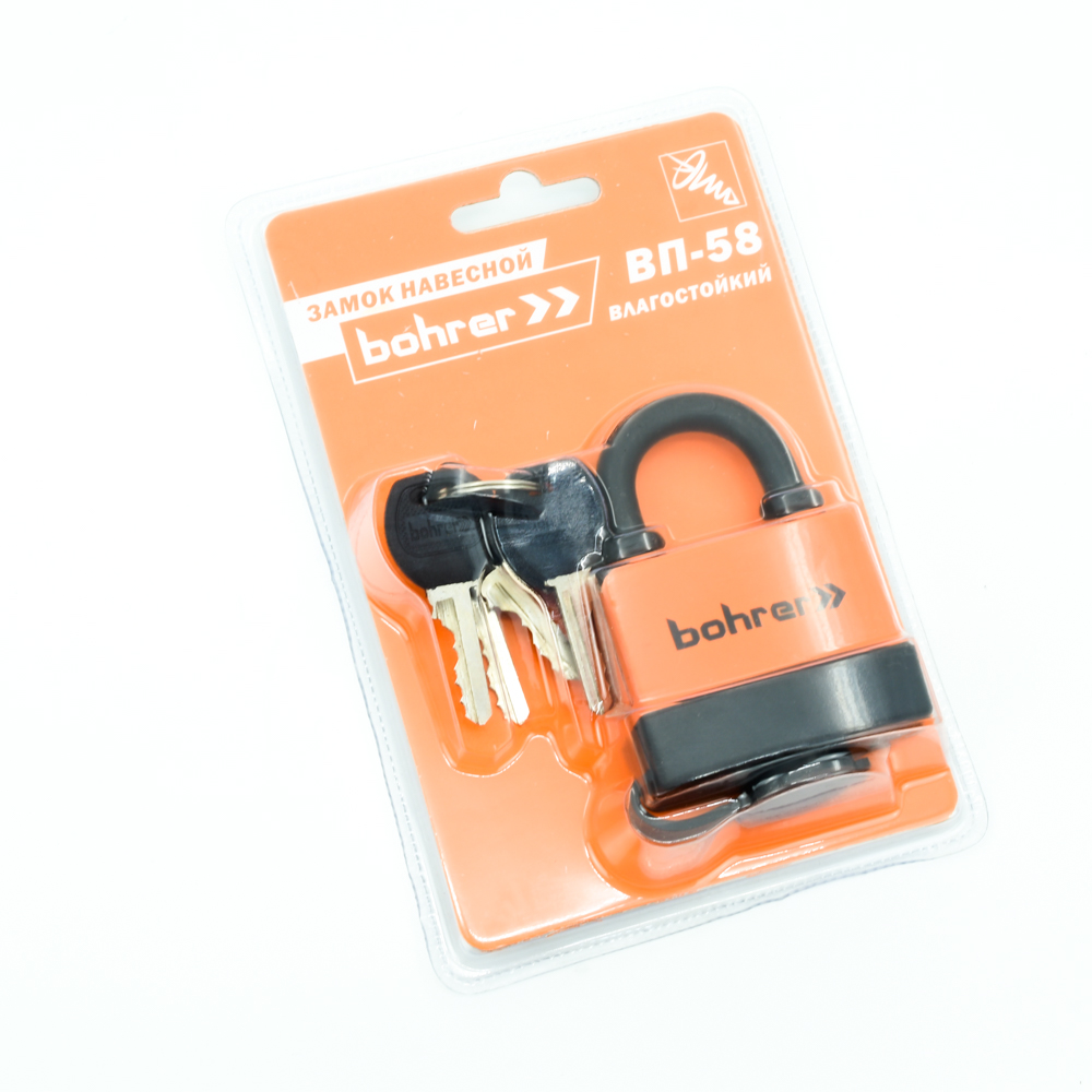 Замок навесной Bohrer ВП-58 влагостойкий (дужка 8,5 мм, 6 ключей) (блистер)