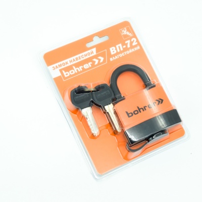 Замок навесной Bohrer ВП-72 влагостойкий (дужка 10 мм, 6 ключей) (блистер)