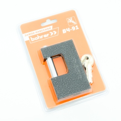 Замок Bohrer навесной ВЧ-91 с прямой дужкой (дужка 12 мм, 3 ключа) (91х18х58мм) (блистер)