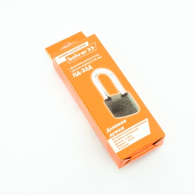 Замок навесной Bohrer ПД-32Д (удлиненная дужка сталь 5 мм, 3 ключа) (корпус чугун, резин. накладки на дужке) (с подвес)