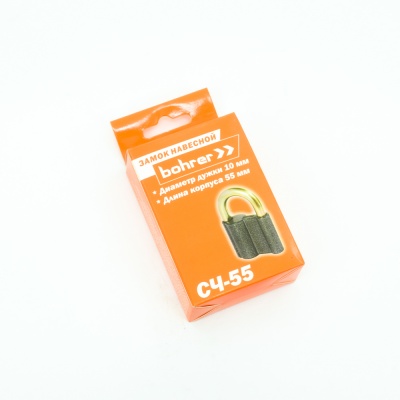 Замок Bohrer навесной СЧ-55 (дужка 10 мм, 3 ключа) (корпус 55 мм) (с подвесом)