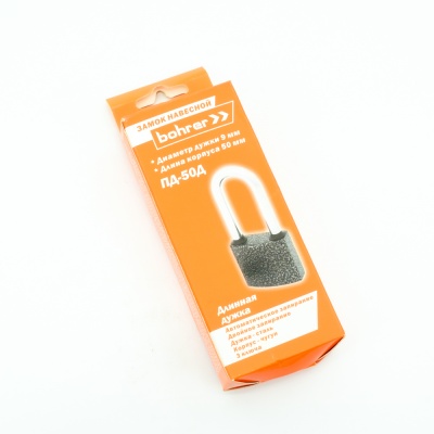 Замок навесной Bohrer ПД-50Д (удлиненная дужка сталь 9 мм, 3 ключа) (корпус чугун, резин. накладки на дужке) (с подвес)